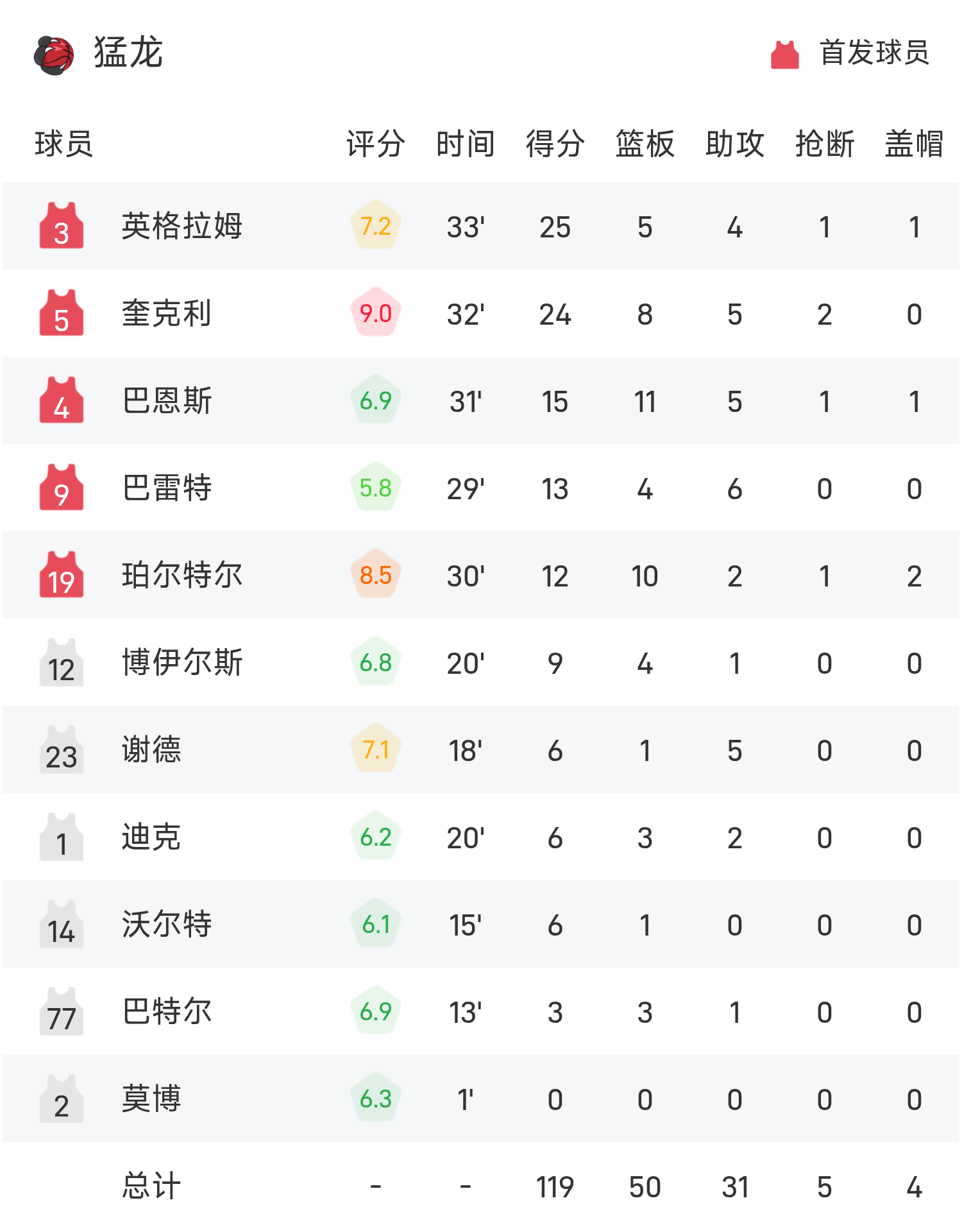 英格拉姆砍下全场最高的25分5板4助,率领猛龙胜利取胜。