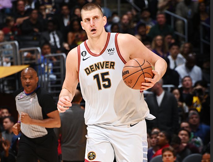 约基奇此役大发神威,在仅仅出场33分钟34秒的情况下,轰下55分12抢篮板6助攻。本场竞赛,快船5名首发球员的得分加起来只得到54分,不如约基奇一人高。