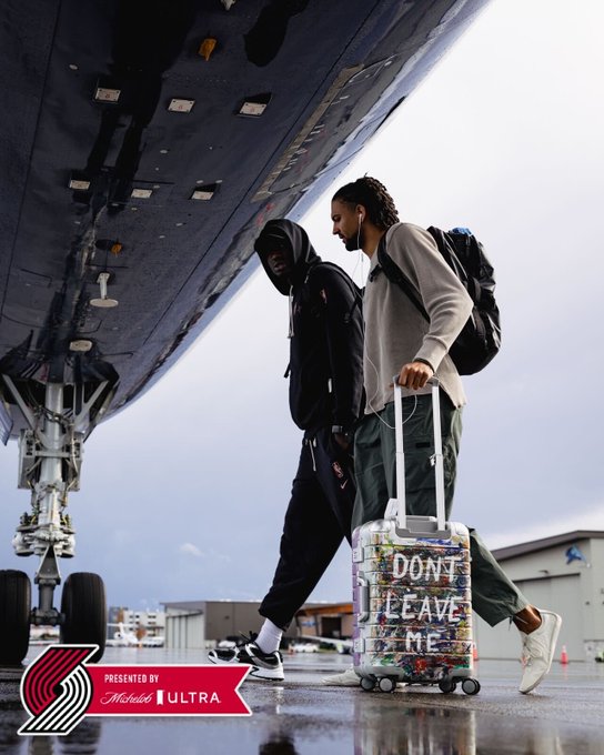 出发前往客队场!开拓者官方社媒晒照,杨瀚森出镜