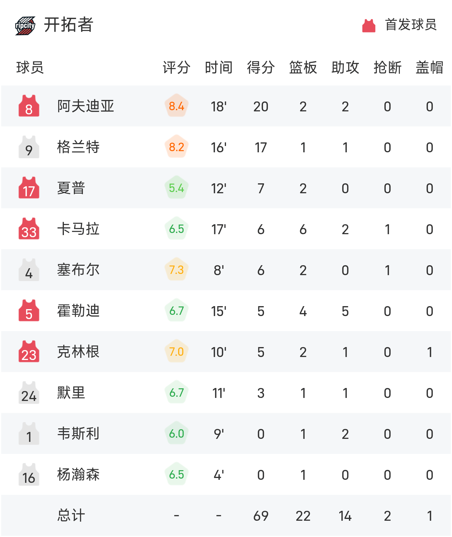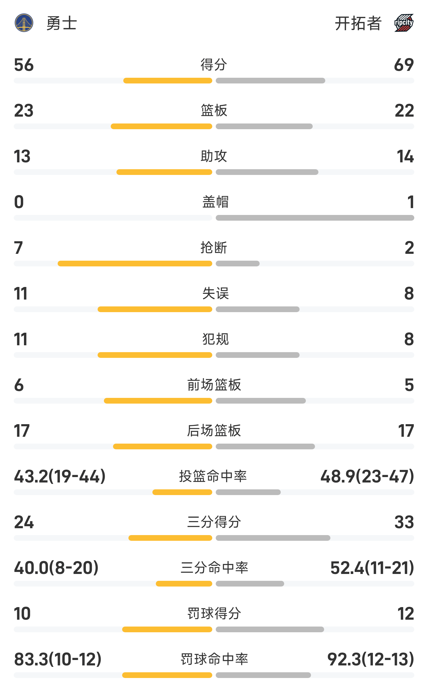 NBA半场:杨瀚森1投0中得到1抢篮板1差错,库里5记三分球狂轰24分,开拓者69-56勇士