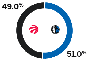 五五开!ESPN预测:独行侠胜率为51%,猛龙胜率为49%