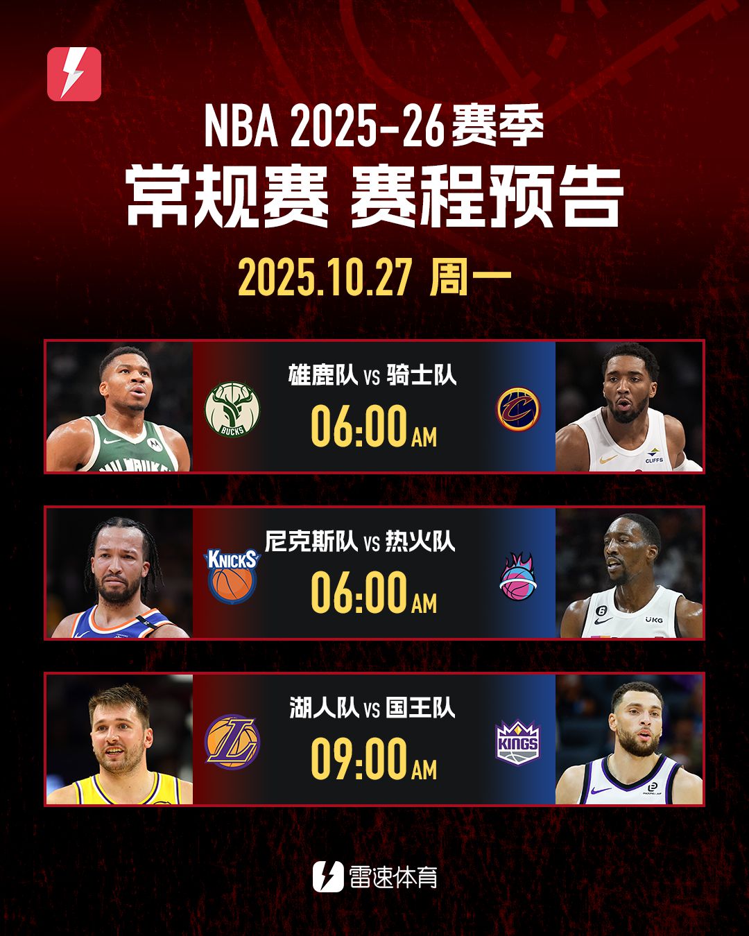 6686体育10月26日讯 明日进行的NBA常规赛,九场竞赛同日开打,除了万众瞩目的开拓者挑战快船外,仍有不少精彩竞赛值得我们共同关注。