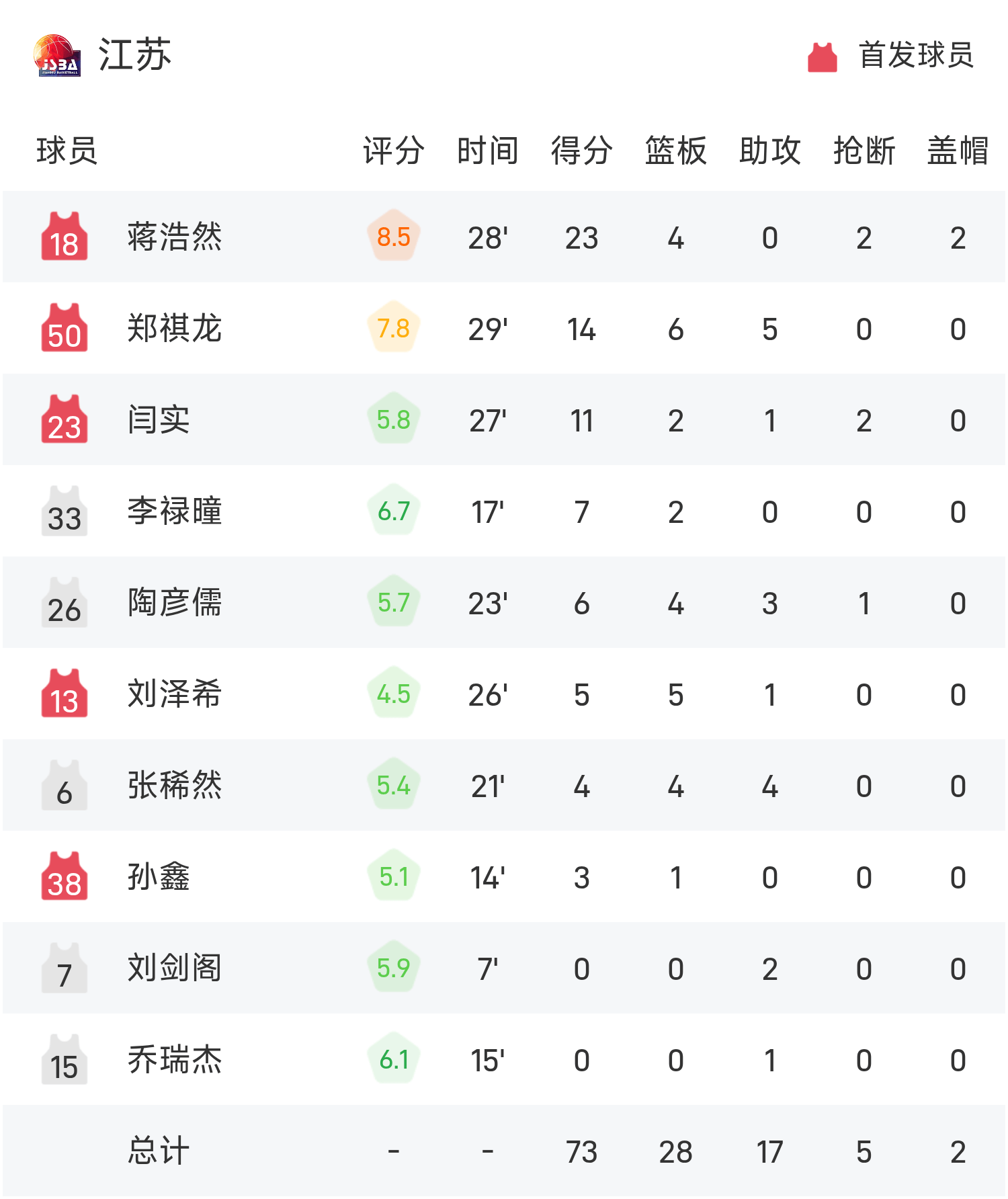全运男篮战报:徐杰29分,广东96-73逆转大胜江苏