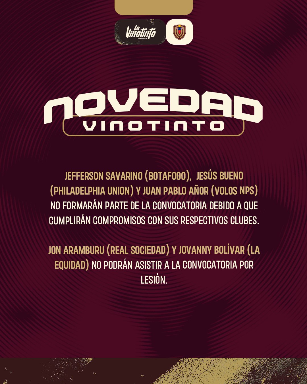 委内瑞拉官方:萨瓦里诺等三人因俱乐部赛会无法出战澳大利亚
