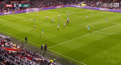 45+5’ 凯尔凯兹门前抢点得手,利物浦1-2布伦特福德