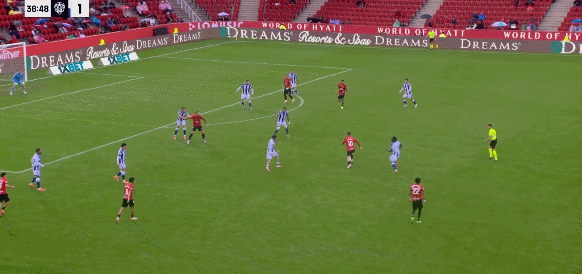 28’穆里奇迅速插上形成单刀,推远角被出击的守门员扑出