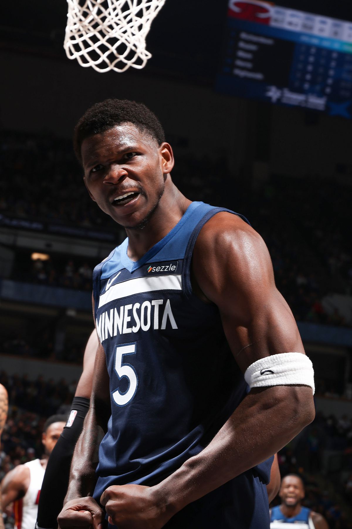 本场竞赛爱德华兹出战38分钟,23投8中,三分球球8投0中,拿到26分,外加8个抢篮板和6次助攻3次截球。