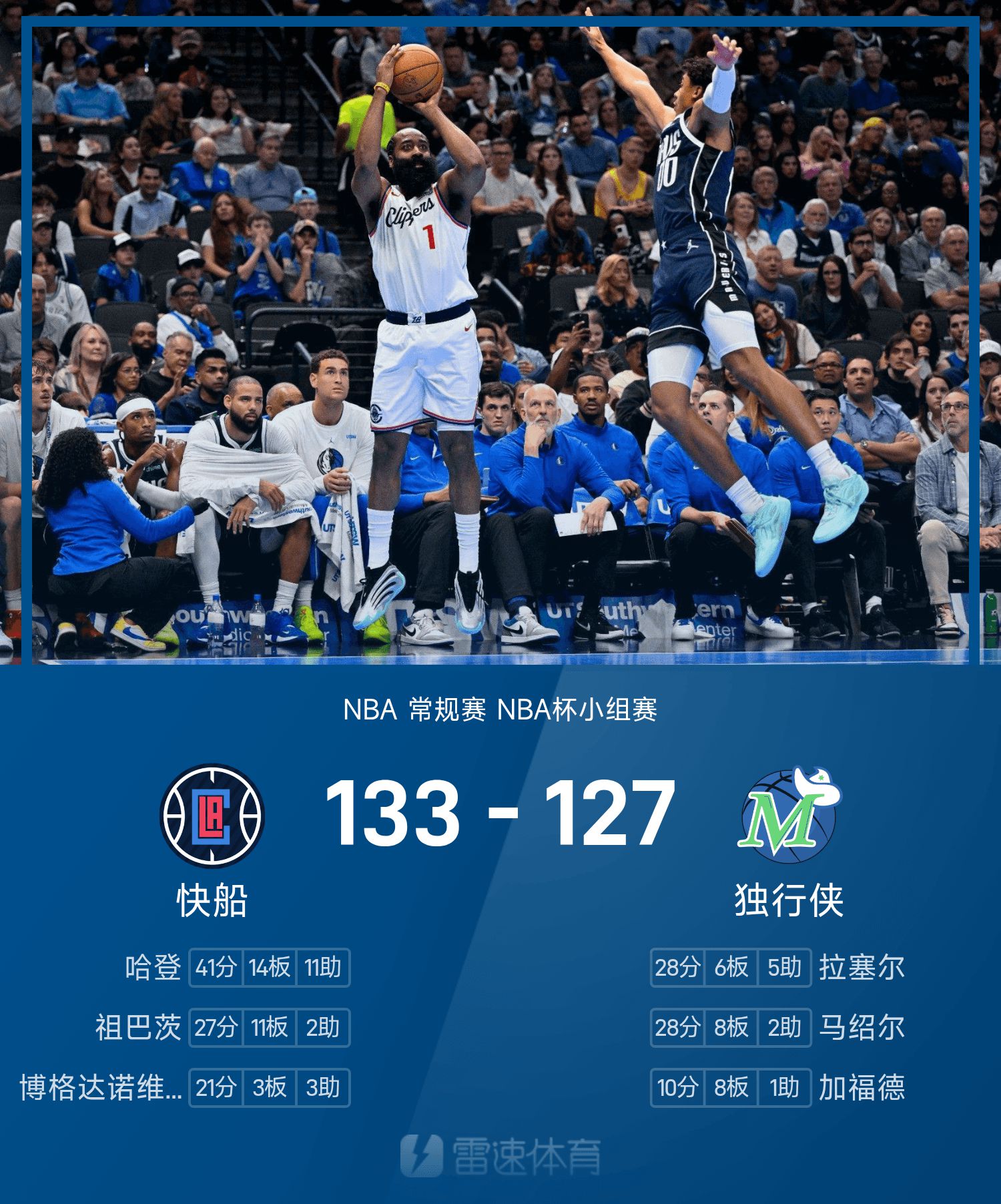 快船133-127独行侠